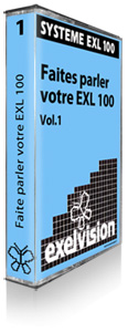 Exelvision: ATI 42, Mille-Pattes, Superbad, Creaphix, Faites Parler votre EXL100 vol.1, Faites Parler votre EXL100 vol.2, Faites Parler votre EXL100 vol.1 et 2, Initiation à l'Exelbasic vol.1, Initiation à l'Exelbasic vol.2, Initiation à l'Exelbasic vol.3, Initiation à l'Exelbasic vol.4, Cité d'Or, Tank Attack, Exel Jack, Midway 1942, CB5, Extensions de l'ExelBasic, Loginateur PGCD, Découverte des fleuves Mers et Océans, Kung-Fu, M'yams, Fixel,Fitext, Fixel - Fitext, Les animaux de la ferme (+16K), Microprocess, Voyage en France, Pluriel,Initiation à la multiplication, Dactylograph'1, España Autonomica