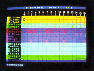 La devise de cette société est de rendre «l'informatique facile à vivre»), en proposant des produits grand-public à des prix très compétitifs. Comme la plupart des jeunes sociétés françaises, elle s'est heurtée au début - non pas à des problèmes techniques mais - à des difficultés de financement. En France, les banquiers ne croient pas au génie des chercheurs. C'est grâce à la C.G.C.T. - Compagnie Générale de Constructions Téléphoniques - que la société a pu naître officiellement en août 1983. Les recherches sont effectuées par une dizaine d'ingénieurs dans les laboratoires de Valbonne (AlpesMaritimes) et le montage est réalisé dans le nord de la France, dans les usines de la C.GC.T., et c'est à la Direction commerciale, qui siège dans la Tour Maine-Montparnasse, que nous avons pu découvrir toute la gamme Exelvision. Le premier produit commercialisé est l'unité centrale du système de base, le micro-ordinateur domestique EXL-100. Ce «micro» a pour but d'intégrer, dans un seul produit, les fonctions principales d'un appareil classique équivalent à ceux proposés par les Américains et d'utiliser en plus les possibilités de communication du Minitel, développé par les P.T.T. Commandes infra-rouges (claviers/manettes - ordinateur), synthèse vocale, périphériques (imprimante - moniteurs - extension disquette - extension mémoire - mini-clavier clavier pro), catalogue complet de logiciels (ludiques - pédagogiques, l'EXL-100 a été retenu par l'Education Nationale) permettent de constituer un ensemble micro important et cohérent. Exelvision ne s'est pas arrêtée là et aborde la musique en proposant une boîte à rythmes programmable. Pour en profiter, il est évidemment nécessaire d'acquérir l'unité de base, la cartouche Basic, un moniteur et un clavier mais quand je vous aurai précisé que l'ensemble complet - avec le logiciel Exeldrums - ne dépasse pas les 4500 F, à quelques centimes près... alors on n'a plus raison de se gêner et on peut en profiter pour s'initier à la micro. Pour ce prix-là, beaucoup de constructeurs proposent seulement un ensemble «micro» ou une boîte à rythmes; Exelvision fournit les deux. L'Exeldrums a été pensé et créé par M. Andreacchio qui a eu la gentillesse de nous expliquer lui-même toutes les possibilités de son logiciel. Pour mener à bien ses recherches, il a fait appel à une autre société bien connue dans le domaine musical, Hohner Electronique. L'Exeldrums est destiné à tous ceux qui veulent programmer des rythmes personnels par l'intermédiaire du micro EXL-100 (musiciens, arrangeurs, disc-jockeys, etc.). Les commandes se font à partir d'un clavier (Azerty) qui fonctionne par transmissions infra-rouges. Vous pouvez composer vos rythmes, bien calé dans un fauteuil, à plusieurs mètres du moniteur; avec cette technique, aucun fil n'est nécessaire entre le clavier et l'unité centrale. L'accès est très facilité par la visualisation optimale offerte par l'écran; l'utilisation est donc simple et accessible à tous, même aux non-musiciens et aux non-micro-informaticiens! L'écriture d'un rythme se fait pas à pas (ou en temps réel; appelé ici «Feeling»). En mode «Frame» (écriture de modèles) un tableau s'affiche sur l'écran ; divisé en 16 pas et 6 canaux (17 instruments). La programmation est à peu près identique à celle de la TR-707 de Roland (en pas à pas). 54 modèles peuvent être écrits et enchaînés de façons diverses. L'Exeldrums possède 8 pistes d'enchaînement de séquences. Il est possible de donner un nom à chaque piste qui peut correspondre à un morceau musical précis. Les corrections et insertions se font aisément. La valeur du tempo est toujours affichée et est modifiable en permanence. 17 instruments de percussions sont donc proposés et répartis en 6 canaux (6 instruments peuvent être lus simultanément). La plupart des instruments sonne correctement, avec une certaine réserve tout de même pour le tambour de basque et le «Brush» du Snare Drum. Signalons un effet tout à fait original, le «Rol» qui est un roulement sur caisse-claire très rapide; il peut se placer sur un pas. La qualité sonore générale - technique numérique - est propre et une sortie stéréophonique (cinch) permet de relier l'appareil à un système d'amplification plus puissant et plus fidèle que celui du moniteur! Les canaux se répartissent à gauche, à droite ou au centre pour obtenir des effets stéréo. Pour les néophytes, l'Exeldrums contient 16 rythmes présélectionnés: valse, Rock, Funky, Samba... Avant d'éteindre l'appareil, il est important de sauvegarder sur cassette (interface-cassette) ou sur une cartouche «Exelmémoire» (16 K) les programmations stockées (rythmes, enchaînements, séquences) dans la mémoire interne de l'EXL-100 qui elle, est volatile. L'Exeldrums va permettre aux possesseurs de micro-ordinateur de s'initier à la musique en commençant par composer des rythmes. Ce logiciel est avant tout destiné au grand public et utilisable par tous (enfants, amateurs). «L'informatique facile à vivre.» Il est évident que le musicien pro préférera une boîte à rythmes indépendante pourvue des équipements standard (interface MIDI, contrôle des timbres, sorties séparées des instruments).