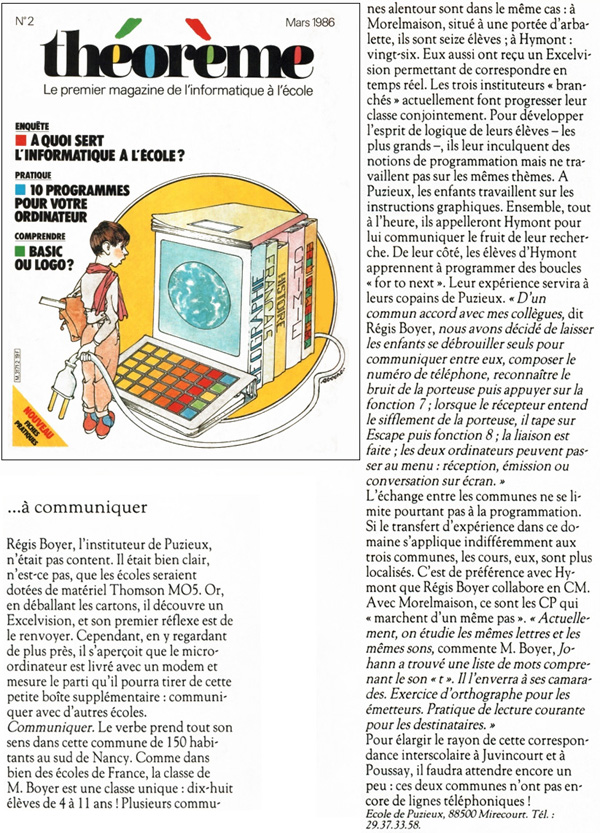 Régis Boyer fût l'instituteur de Puzieux, un petit village situé dans le département Vosges. C'est dans l'unique classe de l'école qu'il enseigna aux enfants, secondé d'un micro-ordinateur... l'EXL 100!